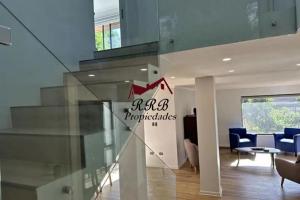 Cuenta con: - Zócalo (sala de cine, oficina, baño). - 1 Dormitorio en primer piso. - Living y comedor. - Moderna cocina amoblada con isla amplia. - 1 baño en primer piso. - Habitación principal en segundo piso, con vista al Río Biobio, amplio walking closet y moderno baño. - Habitación suite con walking closet. - Logia. - Bodega. - 2 estacionamientos. - Antejardín, patio y terraza.